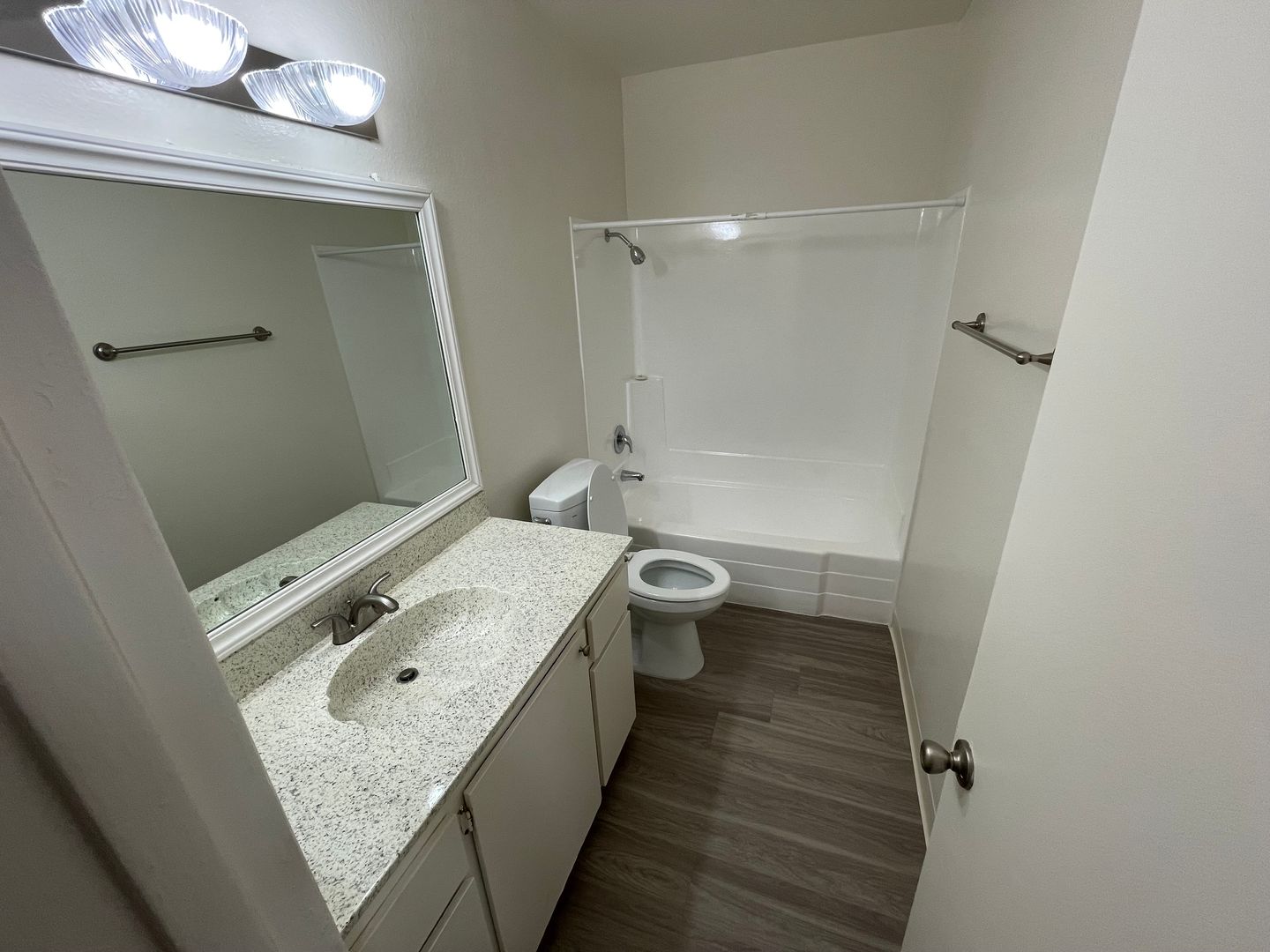 Very spacious 1 bed 1 bath apartment that features new flooring throughout, newly refinished countertops, brand new appliances, and modern fixtures. Also features plenty of closet and storage space with a wardrobe closet in the bedroom and two additional hallway closets. Apartment is located close to our community pond and laundry. Includes 1 assigned parking space. Secondary parking space or enclosed private garage available for rent if needed.
