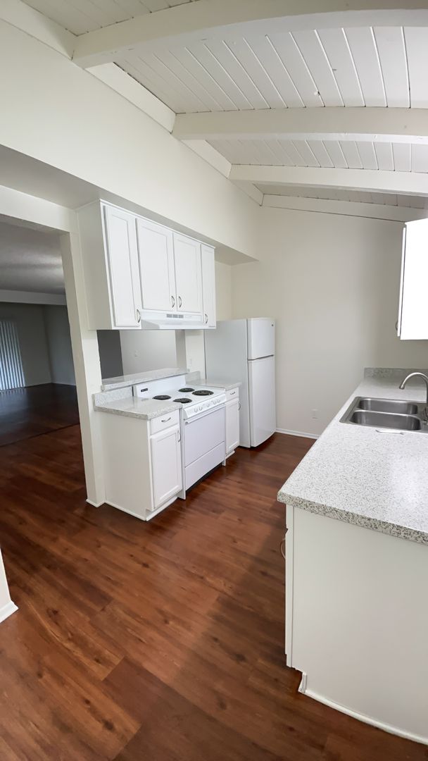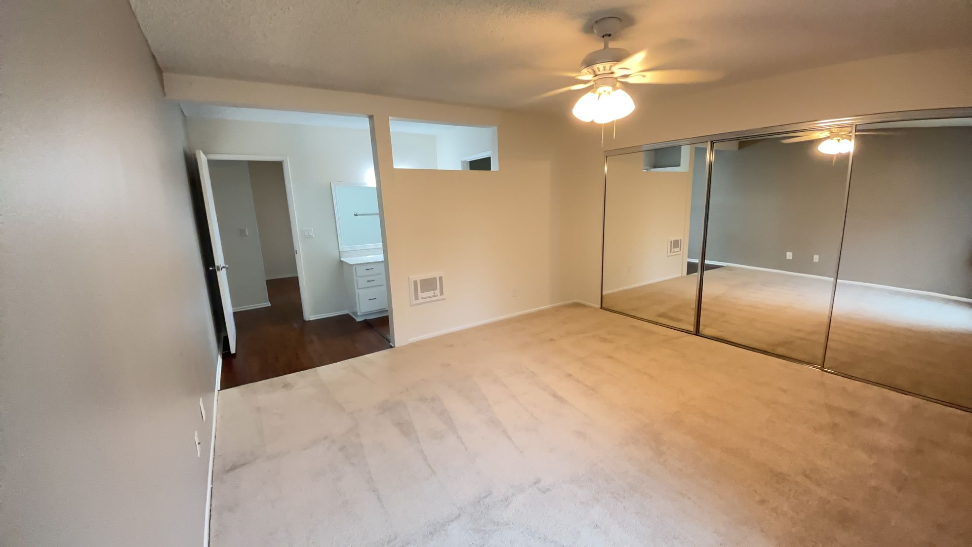 Welcome to your new home in Lake Forest, CA! This spacious 2-bedroom, 2-bathroom apartment boasts 1140 sq. ft. of comfortable living space. The apartment comes fully equipped with all appliances, including an in-unit washer and dryer for your convenience. The kitchen features an electric stove, dishwasher, and refrigerator, with canned lights illuminating your cooking space. The apartment is internet and cable ready, and as a bonus, you'll receive one month of free internet with Cox upon move-in. The living areas are adorned with beautiful vinyl plank flooring, while the bedrooms are carpeted for added comfort. Each room is equipped with wall heaters and the bedrooms and dining area have ceiling fans for those warmer days. The apartment also features mirrored closet doors, adding a touch of elegance.